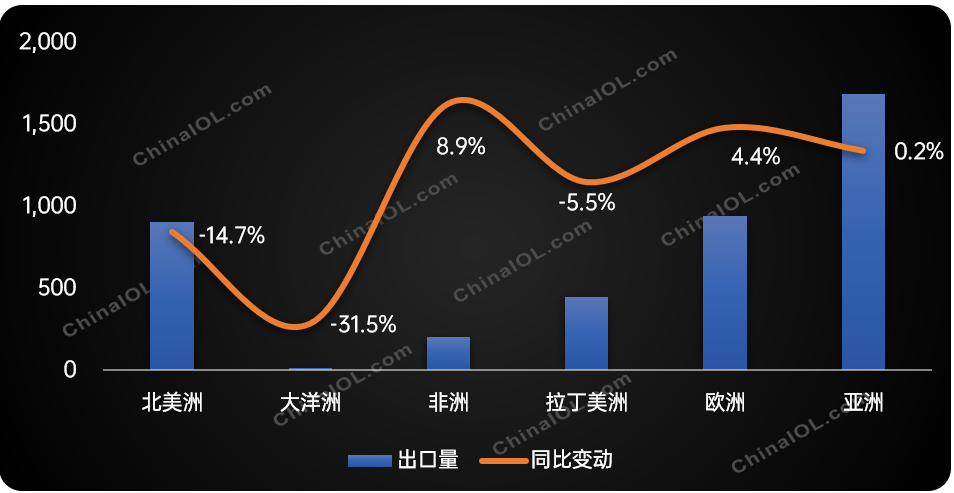 從區(qū)域市場來看,據(jù)產(chǎn)業(yè)在線數(shù)據(jù)顯示,2022上半年,歐洲、亞洲和非洲均實(shí)現(xiàn)了增長,其余洲別呈現(xiàn)下降趨勢,其中大洋洲降幅最大,同比下降達(dá)到31.5%,北美洲緊隨其后,下滑幅度為14.7%。